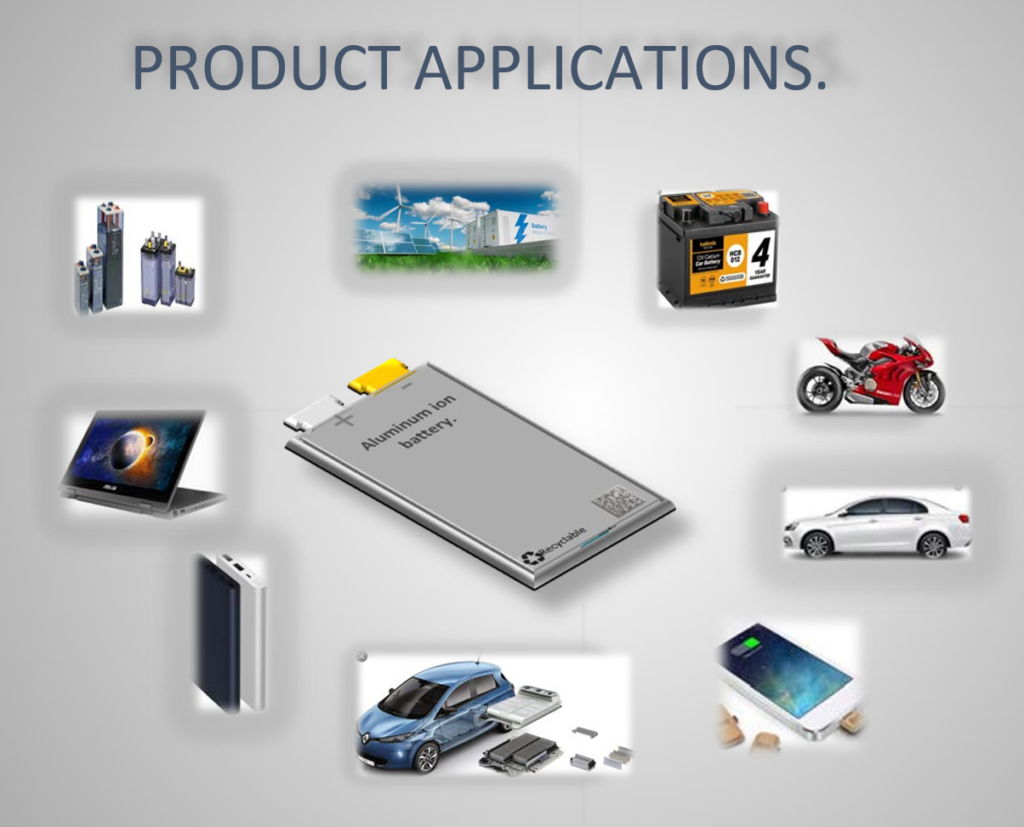 Aluminum-ion battery are ranging from compact power-bank, vehicle’s EV battery to energy storage system for household usage and within solar farms.