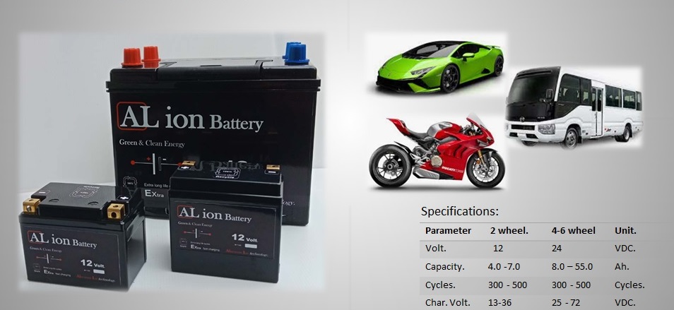 • Aluminum-ion EV battery (450 watts and 500 watts)